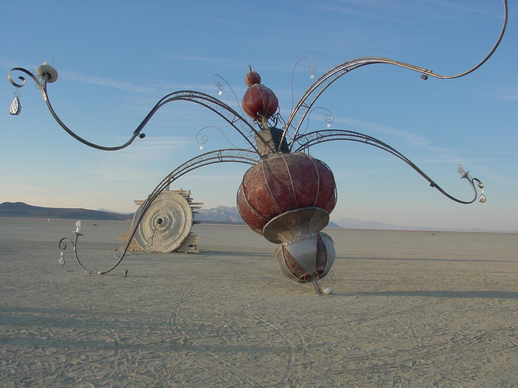 This is one art installation that I had seen before I ever got to Burning Man. During one of the meetings at Burning Man Headquarters in San Francisco I saw a model of an art installation. I turned to someone and said, "Is someone really going to build this?" They said, "Apparently." The model make it apparent that some very heavy slabs of material were to be suspended over the desert from what looked like an inadequate frame. (Disclaimer: I'm pretty sure the people who designed this took the engineering into account.... since this was eventually to end up in some public place other than Burning Man). I made a mental note to find it when I got there.