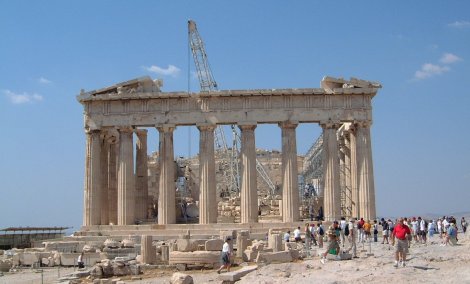 The total weight of the Temple, including the blocks on the base was 70 TONS (140,000 lbs). Each of the suspended granite slabs weighed in at 13 TONS. The temple has it's own web space here