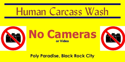 Scotto suggested that we might need some new signage for the Human Carcass Wash. Something that would tell people where it was when it was not in operation, and that no photography was allowed.