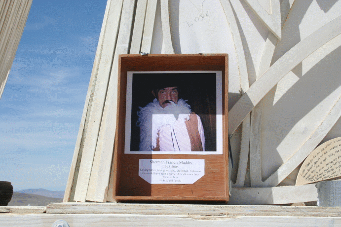 One of our long time Poly Paradise participants, Scix, was not going to be able to make it to Burning Man in 2006. But wanted to place a memorial to his Uncle at the temple. I volunteered to create and place it for him.